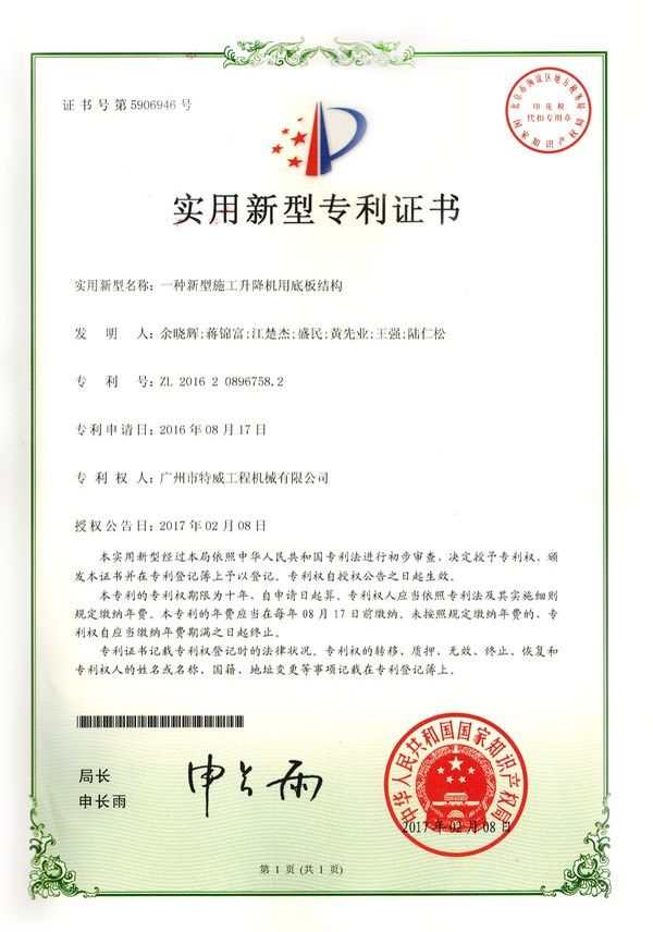 廣州市特威工程機械有限公司地處廣州市白云區神山鎮,廣清高速神山出口附近,是一家施工升降機的專業生產廠家。公司成立于2011年,占地100000多平方米,注冊資金1060萬元,現有員工300余人其中工程技術人員33人,高級技術人員52人。